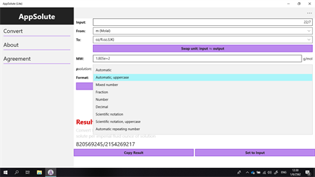 om AppSolute (Lite): the Concentration converter
