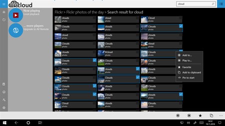With AV Cloud you have cloud media at your fingertips – any time, any place and free. Create playlists and slideshows from your favorite media sources Dropbox, Flickr, OneDrive, Google Photos, SoundCloud and Flickr. AV Cloud is a spin-off of the successful remote control app AV Remote.
