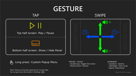 A lightweight UWP video player for PC/Tablet/Phone. Supports touch control (swipe, scale...), Easy to use, fast loading, low power consumption. Supports hardware decoding, gesture, subtitle, MKV...