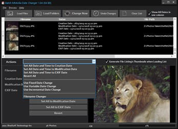 Batch MMedia Date Changer requires a two-step process which firstly let you review the changes to the dates before applying them. So as not to make yet another boo boo which could ruin the day. Once you are happy with the changes, click the Change Now button and let the application do its magic.