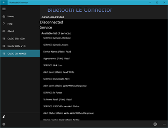 This app is developed for the lucky owner of device supports Smart technology (Bluetooth LE). The application is for you if your phone/PC can detect the device Bluetooth LE. Supported devices : • All devices with Bluetooth 4.0 (Smart Bluetooth) • CASIO Smart Watch G-Shock (tested on the models GB-X6900B, STB-1000). • BQ-mobile (tested on BQ-W008) • Devices supporting service warning signal loss. Features: • Device notification of phone/PC loss. • Phone/PC notification of the device is lost. And point of the last location on the map, when it was synchronized. • Synchronize time on the phone with a clock connected (CASIO G-Shock). • Alarm watch settings (CASIO G-Shock) • Timer settings (CASIO G-Shock) • Basic watch settings (CASIO G-Shock) • Phone/PC Finder notification (CASIO G-Shock) • Device Information • Displays a list of supported services with full description of known. • Notifications Applications Events (Windows 10)