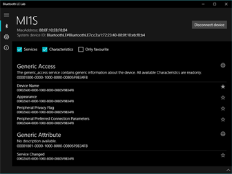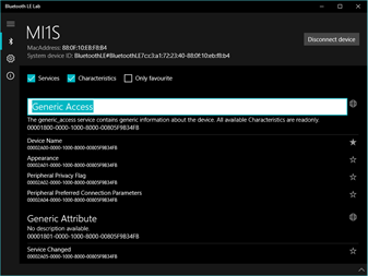Bluetooth Low Energy Lab - a free tool for interaction with Bluetooth LE devices, which support GATT protocol. You can see which services and characteristics device has, read and write data, save notes and more. We will provide information about commonly used capabilities of your device and will try to make your work as convenient as possible.