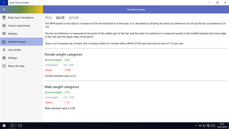 The app does not claim to provide scientifically usable evidences. Therefore too many possible interpretations of the calculated BMI, WHR and WHtR values exist.