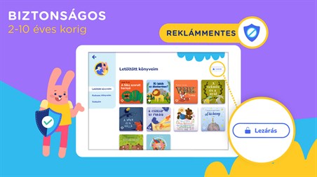 BIZTONSÁGOS A reklámmentes, gyerekbarát felület elérhető telefonon, tableten és számítógépen is. A lezárható saját polc funkciónak köszönhetően a gyerekek csak az általad előre kiválasztott könyvek közül tudnak válogatni.