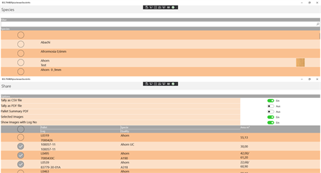 A Veneer warehouse Management information App. The inventory can be synchronised with the images attached to the veneer. Filter functions are available to search for specific data with the ability to filter for species, length, width, with/without pictures and multiple qualities. With an integrated share feature for tallies and pictures.