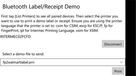 btPrintUWP is the successor of btPrint4WP, a demo tool to print pre-defined labels and receipts on wireless Bluetooth printers.
