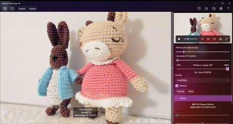To preview or save video, select desired resolution, frames per second (1 to 240 fps) and every Nth photo to be used (1 to 300th). Preview or save video with different settings using the same photos or select any folder with existing photos.