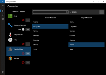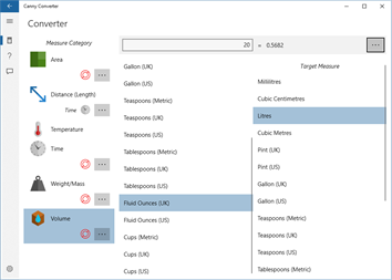 While some other conversion Apps are more comprehensive in the number of units of measure they offer, the developer of Canny Converter decided to only provide the measures that most people might use in their everyday lives. So, while you won't see Parsecs, Bushels or Gigapascals, you will get an interface that's easy to navigate without lots of page-switching and scrolling of long lists.