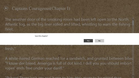 This app is a free ebook of "Captains Courageous" Captains Courageous is an 1897 novel, by Rudyard Kipling, that follows the adventures of fifteen-year-old Harvey Cheyne Jr., the spoiled son of a railroad tycoon, after he is saved from drowning by a fishing boat in the north Atlantic.