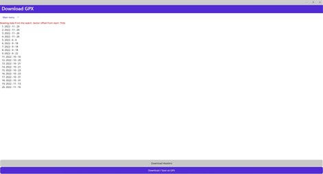 This is a sync app for the Casio GPR-B1000 watch, it uses Bluetooth LE connection to download GPS coordinates of the previously recorded routes from the watch and then the coordinates can be saved in GPX format.