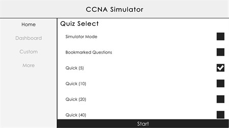 QUICK EXAM Allows you to quickly start a 5, 10, 20, 40, 50 question exam with randomized questions.