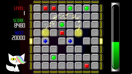 A fun puzzle game, featuring Chromie the cat! Connect Green Gems to score points; the longer the path, the more points you earn. Red Gems will block your path and can create pits, while Blue Gems will restore tiles and give you a bonus. The positions of the gems will create music as you play the game!