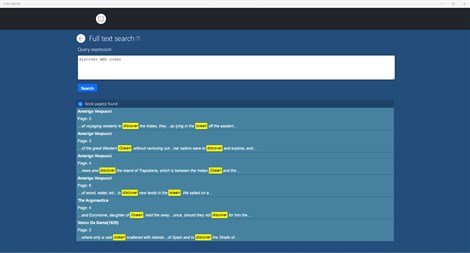 All text pages of e-Books are indexed, texts are also extracted from images (OCR) which allows to have a full text search engine running on ePub files but also on CBZ files.