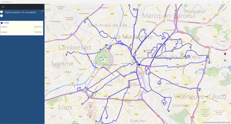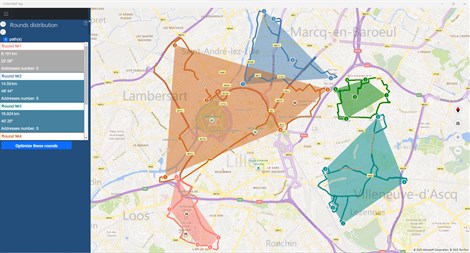 The application calculates in particular itineraries in light and heavy vehicles as well as the calculation of rounds (delivery, collection, ...)