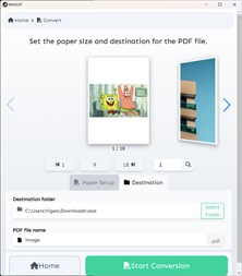1. Drag and drop image data into the application or specify the folder where the image data is stored. 2. Specify the destination of the PDF file containing the image data 3. Click the "Convert" button