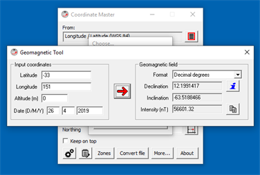 Additionally, the "More..." button provides access to more built-in tools, including: Geomagnetic field, Compute datum shift, Point Scale Factor, Grid convergence, and Convert units.