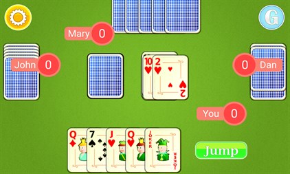 ✓ If you have an 8 or a joker you can place it over any card. ✓ If you place a card of 2 the next player must take 2 cards from the stockpile. If he places a 2 the next player after him must take 4 cards and so on. ✓ You can use the Jack to make the next player wait a turn. If the player before you places a Jack you can wait or place another Jack. ✓ Following this turn the player who won't respond with a Jack waits a turn. ✓ If you don't have a suitable card, you can draw one from the stockpile. ✓ In order to wait a turn or take a card from the stockpile you need to tap the button next to your hand of cards. ✓ If you don't have a suitable card after taking one from the stockpile, you must tap the "Jump" button. ✓ You can use a 9 to reverse the order of the play. Normally the deal is done clockwise. ✓ You can use an 8 to change the playing suit color. After you place an 8 a menu appears from which you can select the suit you want. ✓ If other players specify a new suit using an 8, the type of the suit will appear briefly on top of the stockpile. ✓ After a player plays all his cards, the round ends and points are awarded to this player. ✓ The points are calculated by adding 10 points for each common card and 50 points for eights, Jacks, nines, and twos. ✓ The first player to reach 300 points wins the game. ✓ The game saves its state so you can exit the game and return from where you left.