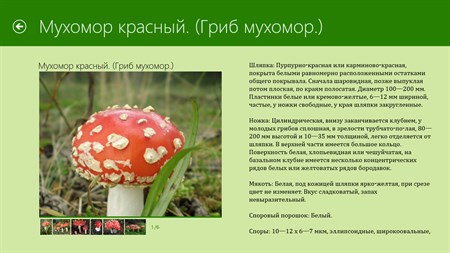 Приложение "Грибы" содержит подробное описание и фотографии почти сотни грибов.