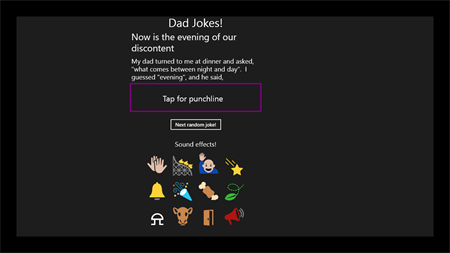Chock full of jokes just like Dad used to tell. All the jokes have been kid-tested. They didn't all pass, but they were all tested! And the app includes fun sound effects like applause, clapping, and a drum roll. App is free, but it does have ads.