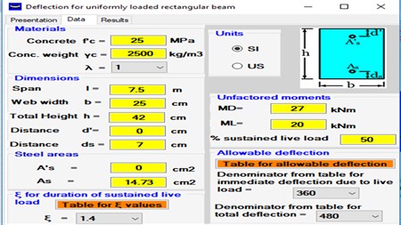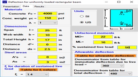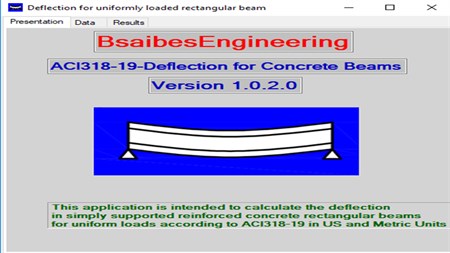 This application is intended to calculate the deflection in simply supported reinforced concrete rectangular beams for uniform loads according to ACI318-19 in US and Metric Units