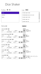 Dice Shaker is a dice roller application that allows one to configure dice and character profiles. With your Dice Shaker app you can store all the dice for your D&D characters. With it you can now also roll standard status rolls for your new character. If ever you character dies, you can delete its dice profile if you never want to see it again. Dice Shaker plans to become the elite d20 dice app for the Windows.