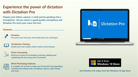 Prepare your letters, reports, e-mails just by speaking into a microphone. Say words and watch them appear on your screen. All you need is a good quality microphone and Dictation Pro turns your voice into text.