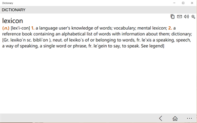 Dictionary is a free offline English dictionary containing over 200,000 words and definitions and no ads. Dictionary is ideal for both native English speakers and English learners or people studying the English language. The dictionary definitions are stored locally, and because it's ad-free there's no need for a network connection. The home page contains a randomly selected word cloud which will pique your curiosity and help you improve your vocabulary, while the search box allows you to find specific words easily. As you type, Dictionary homes in on the word you are looking for. Then you can follow the links in the definition page to get more word definitions.