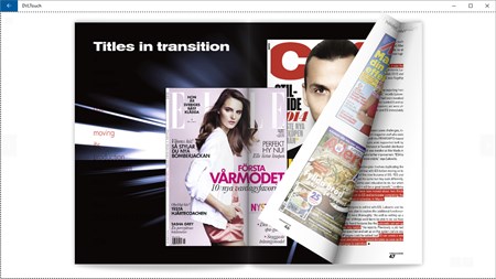 DVL Touch brings print-ready PDF publications to your Windows device, after turning originally static page documents into a feature rich multi-media experience with DALIM SOFTWARE's eMagMaker. Based on DALIM SOFTWARE's DVL Touch technology and a complete web-based enriching application, that allows interactive insertion of hyperlinks, videos, slide shows and more, you can turn your print-ready PDF versions into an intuitive app, including: