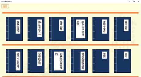 道德经 颜氏家训 一千零一夜 格林童话 安徒生童话 佛教的见地与修道 礼记 尚书 基督山伯爵 巴黎圣母院 汤姆叔叔的小屋 昆虫记 苏菲的世界 新教伦理与资本主义精神 静静的顿河 艺术与现实的审美关系 复活 古代社会 茶花女 小王子 冰心散文选 阿Q正传 少年维特之烦恼 追忆似水年华 梦的解析 法学阶梯 史记 抱朴子 钢铁是怎样炼成的 罗密欧与朱丽叶 论语 管理学 资治通鉴 新工具 本草纲目 人性的弱点 尤利西斯 伦理学 理想国 悲惨世界 实用主义 社会契约论 安娜·卡列尼娜 资本论 穆斯林的葬礼 活着 经济学原理 飘 金刚经释义 毛泽东诗词全集 徐霞客游记 神曲 六祖法宝坛经 庄子 吉檀迦利 荷马史诗 三十六计 简·爱 聊斋志异 马可·波罗游记 梦溪笔谈 围城 中庸 贞观政要 窦娥冤 红与黑 麦田里的守望者 老人与海 红楼梦 西游记 三国演义 水浒传 战争论 悲剧的诞生 物种起源 论法的精神 君主论 人口原理 唐吉诃德 源氏物语 政治学 鲁滨逊漂流记 国富论 几何原本 水经注 大学 论语 老子 左传 孟子 韩非子 正义论 孙子兵法 曾国藩家书 文明的冲突与世界秩序的重建 周易 美的历程 百年孤独 菜根谭 诗经