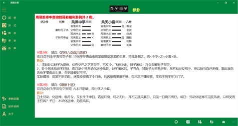 本软件六十四卦析义,汇集《焦氏易林》,《京氏易传》,《周易大传今注》书籍内容,供断卦时参考。