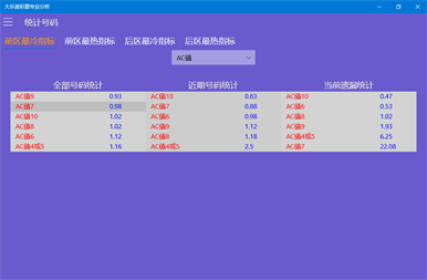 本软件用于彩票大乐透专业级指标分析,总共有五百多种指标,可以联网更新号码,可由指标筛选号码,既有统计数据又有图形数据,由理论概率和各期号码经严谨计算,数据准确无误,是精心设计的功能较完善的分析软件。