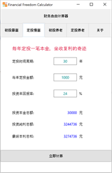这个财务计算器帮助投资者精确计算复利投资、定投投资、养老投资所涉及的计算,非常准确、灵活且简单。