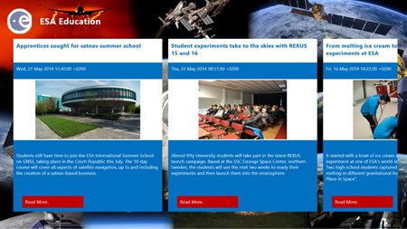 The European Space Agency (ESA) is Europe's gateway to space. Its mission is to shape the development of Europe's space capability and ensure that investment in space continues to deliver benefits to the citizens of Europe and the world. The European Space Agency News app displays the latest news from the ESA web site from RSS feeds. Includes native language news for ESA member countries.
