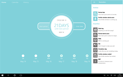* Predict your future period, ovulation and fertility window * Remember your cycle history so you don’t have to * Track symptoms like BBT temperature, mood, flow, fluids, spotting and pain * Alert you when your period is coming so you get yourself and your tampons together * Alert you when your fertility window is coming so you get your partner ready * Remind you to take your pill so you don’t replicate yourself accidentally * Remind you to log your symptoms so you track each one of them * Provide moral support at the right time (this part is under construction) * Be the easiest and most comprehensive ovulation calendar on Earth