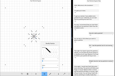 If Sir Isaac Newton could write an app, this is what he would create. Satisfy your demand for physics with this easy-to-use app, which is designed to simulate Newton's Universal Law of Gravitation and his three laws of motion. Enjoy hours of limitless physics at your fingertips. >>Check out the built-in help section for a tutorial on how to use the app. >>Note: this app uses fluent design elements, which are demanding on low-end hardware. If you experience lag, you are advised to go to Settings>Personalization>Colors and disable "transparency effects" under the heading "more options". After you change this setting, you may need to restart Fast Particle Engine. >>This app works well with dark mode enabled. To switch to dark mode head to Settings>Personalization>Colors and click "dark" under "choose your default app mode".