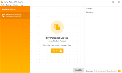 Cross platform WiFi network file sharing application. Share files between Windows, Mac, and Linux devices on the same network. Works in private network, VPN, and LAN.