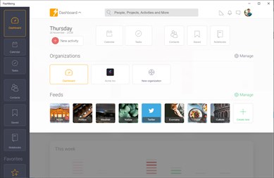 Along with the dashboard, increase your productivity with: - Your personal calendar and task manager, which groups all the activities related to do your different projects. - Time tracking with analytics: you will be able to see which are your most profitable clients and how much time you spend to communicate. - A AI based news aggregator, which allows you to be up-to-date and easily share what matters in your work. - Notes with also videos, images, files and links. - Chat with email integration, allowing you to communicate with also people that don't have FlashBeing. - Your contacts manager.
