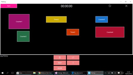 The FlexiLog app allows the user to build custom button panels for timing and counting multiple parameters simultaneously. The user can customize the buttons in size, colour, label and name.