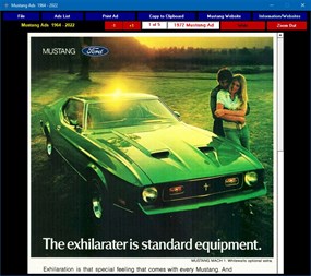 Mustang Ads 1964 - 2022. Take a nostalgic journey back to the beginning of the Mustang. See the very first Mustang ad as it appeared in magazines back in 1964. Then follow the evolution of America's favorite "Ponycar" right on up to the latest 2022 "retro" supercars and electric Mach E. This unbelievable digital collection contains well over 400 Mustang magazine ads released by Ford that will fascinate you for hours! This is the largest collection of Mustang ads available anywhere.
