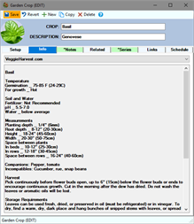 ✔ Useful crop information from multiple selectable sources including VeggieHarvest; (http://www.veggieharvest.com/), Southern Exposure, and a couple University Extensions.
