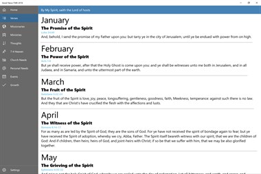 The Good News FWB 2016 is a fresh challenge to the growth of Christians. Each Year Good News FWB establishes an annual theme designed to strengthen our walk with Christ. This year that theme is, “By My Spirit.” This application provides monthly scriptures selected to help focus on the Person Whom Jesus Himself promised to send us. Tap a verse in the monthly verses list and the application recites the verse to help with memorization. The application also highlights the monthly ministries and missionaries receiving our focused support. There is a monthly calendar of events for the church as well as the ability to record individual and community prayer needs as well as a specific list we call, “Seven for Heaven.” It is a list of the people we would most like to see surrendered to Christ. New this year is the monthly newsletter, the ability to email prayer needs and import them directly into the Good News FWB 2016 app.
