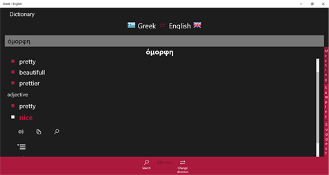 This application is an offline English ↔ Greek dictionary and translator. This is a very fast dictionary app.