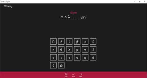 •English → Greek 99,000 words and phrases. •Greek → English 96,000 words and phrases. •English irregular verbs. •Test, flashcard, listen test, writing, dual game and more... •English ↔ Greek translator (online). You can translate text and listen. •2,400 phrases