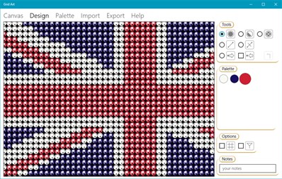 "Grid Art" allows you to create design patterns, especially for cross-stitch, rhinestones, beads artwork and pixel art. It is possible to create patterns either by starting from scratch or by importing photos and drawings. Final result can be exported as color scheme and palette list. Welcome to Support Forum! Here you can share your patterns and get application support. To register on the Forum the anti-spambot password is "win10".