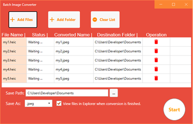 Batch Converter: 1. Select images as many as you want. 2. Choose the format you want to save as. 3. Change the saving path. 4. Batch convert just by one-click. 5. See the converting status of every image. 6. Enjoy the fast converting.
