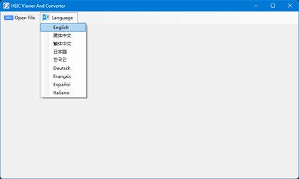 You can zoom in and out to view Heic image files. Heic format can be converted to JPG, PNG, BMP, GIF, TIFF, WMF image format. Multiple languages can be switched.