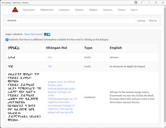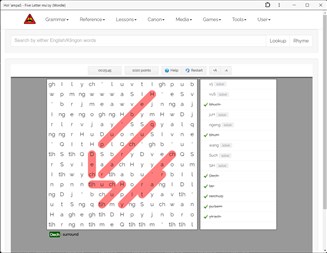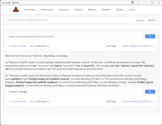 Searchable tlhIngan Hol dictionary that will parse words Searchable canon, from multiple sources including TKD, KGT, HolQeD, and more Text to Speech can speak both words and sentences Expanded grammar guide Lessons Flashcards Games, including wordsearch, word guessing, and number combining