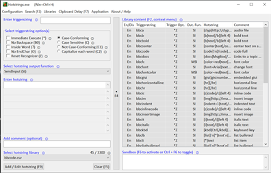 Text replacement tool: short text (aka string aka triggerstring) is automatically replaced to long text (aka string aka hotstring).