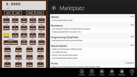 The HP-41 CV for your Tablet The HP-41 CV was the best and handiest Pocket Calculator in the 90’st. (Part of the Apollo missions!) A UPN calculation with the same genial handling is now available for Windows Phone and Windows Store. For all users, not familiar with the UPN Concept, a Basic course with examples is included. In addition simple calculation can be done in a mode without UPN. The most functions of the HP 41 CV are available free. In addition statistic functions, programmability, persistent Key assignment and new functions like robust static and quality control charts can be bought as option.