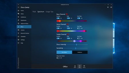 Create your own custom photo ambiences and enhance the colors with our "Tweaks!". Photo ambiences are stored on the Hue bridge with our OmniScene technology, meaning you don't have to recreate the ambience for different rooms. Not only that, they are accessible from all your devices - the only app on Windows 10 to have this functionality!